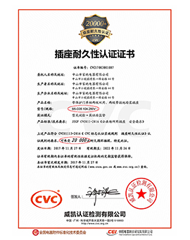 曾經(jīng)獲得V8-B5插座耐久性認(rèn)證證書