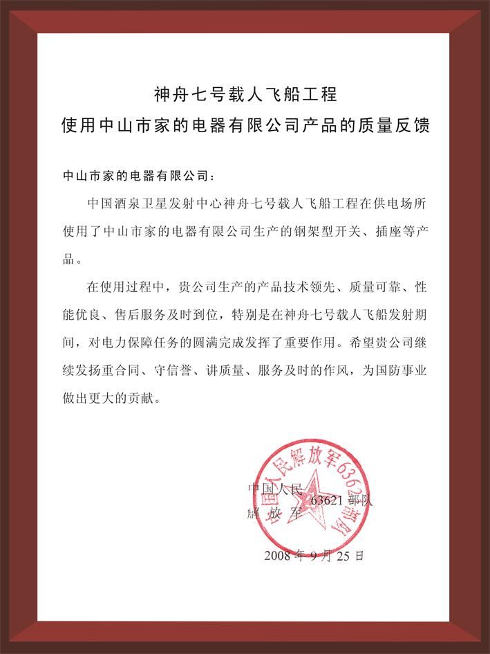 比如,2008年,神州七號載人飛船工程,使用家的產(chǎn)品后進(jìn)行質(zhì)量反饋:“貴公司生產(chǎn)的產(chǎn)品技術(shù)領(lǐng)先、質(zhì)量可靠、性質(zhì)優(yōu)良、售后服務(wù)到位,特別是在神州七號載人飛船發(fā)射期間,對電力保障任務(wù)的圓滿完成發(fā)揮了重要作用。”多年來,家的為千千萬萬個家庭,提供質(zhì)量可靠、安全的開關(guān)插座,年產(chǎn)能開關(guān)為5000萬只。