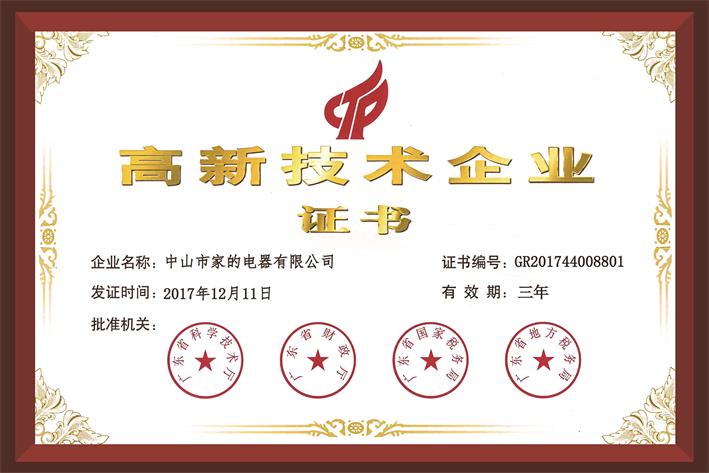 早在2017年底,廣東省2017年擬認(rèn)定高新技術(shù)企業(yè)名單在網(wǎng)上公布,家的亦在其列。2018年5月,“高新技術(shù)企業(yè)”證書正式下達(dá)。家的獲得該榮譽(yù),實至名歸!
