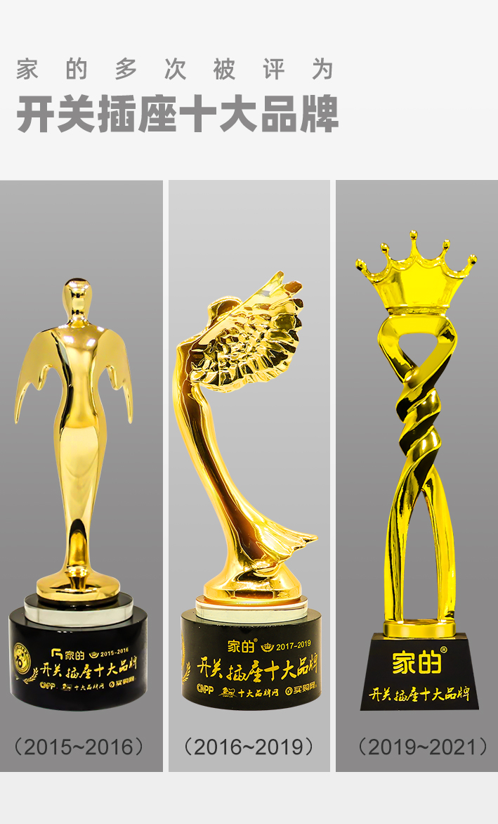 品牌。品牌是品質(zhì)的保證,是工程建筑合作方的首要考量因素。2015年~2021年,家的開關(guān)多次被評為“開關(guān)插座行業(yè)十大品牌”。