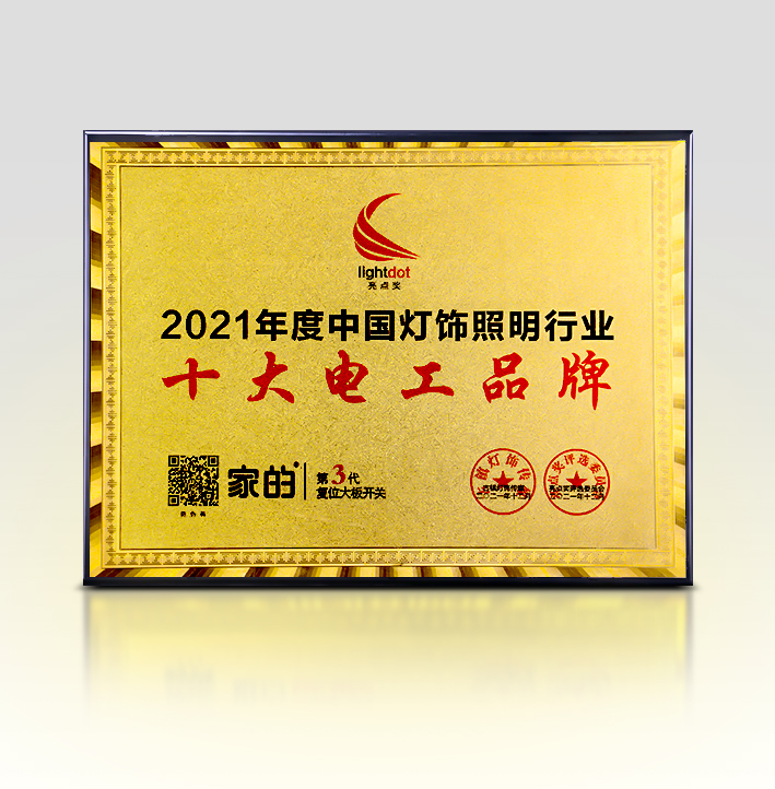 接下來是頒獎環節。2021年度人物、年度領袖品牌、各品類十大品牌、單品冠軍的名單逐一揭曉。家的開關榮獲2021年度中國燈飾照明行業“十大電工品牌”獎項。