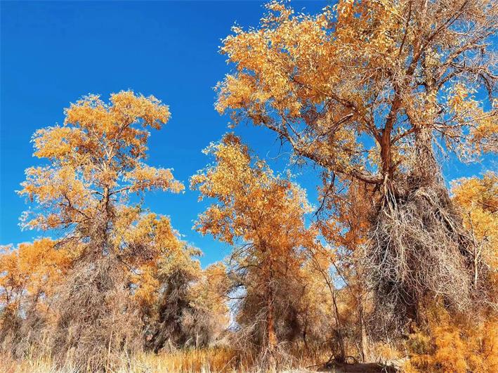 在這秋高氣爽的季節(jié)里,大家欣賞塔里木的原始胡楊林,呼吸新鮮空氣,心情舒暢!胡楊林在干旱的環(huán)境下茁壯成長(zhǎng),抵抗風(fēng)沙,讓大家感受到生命力的頑強(qiáng)。
