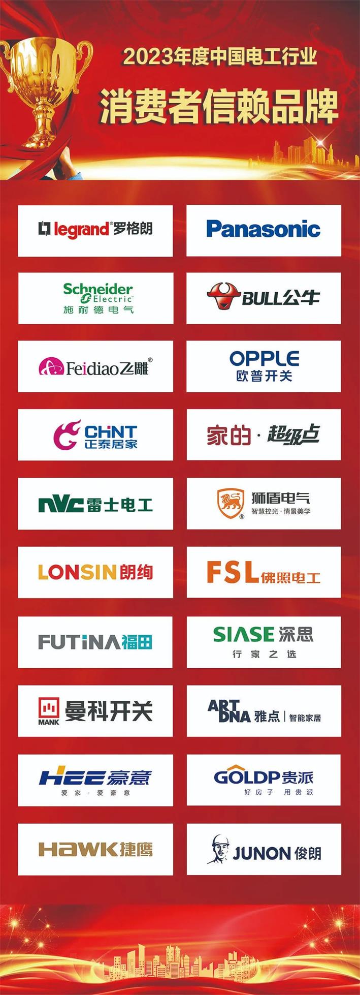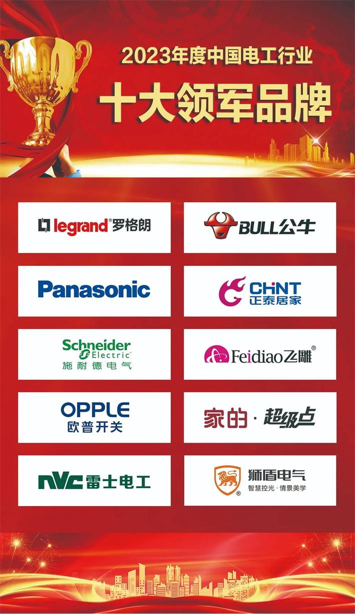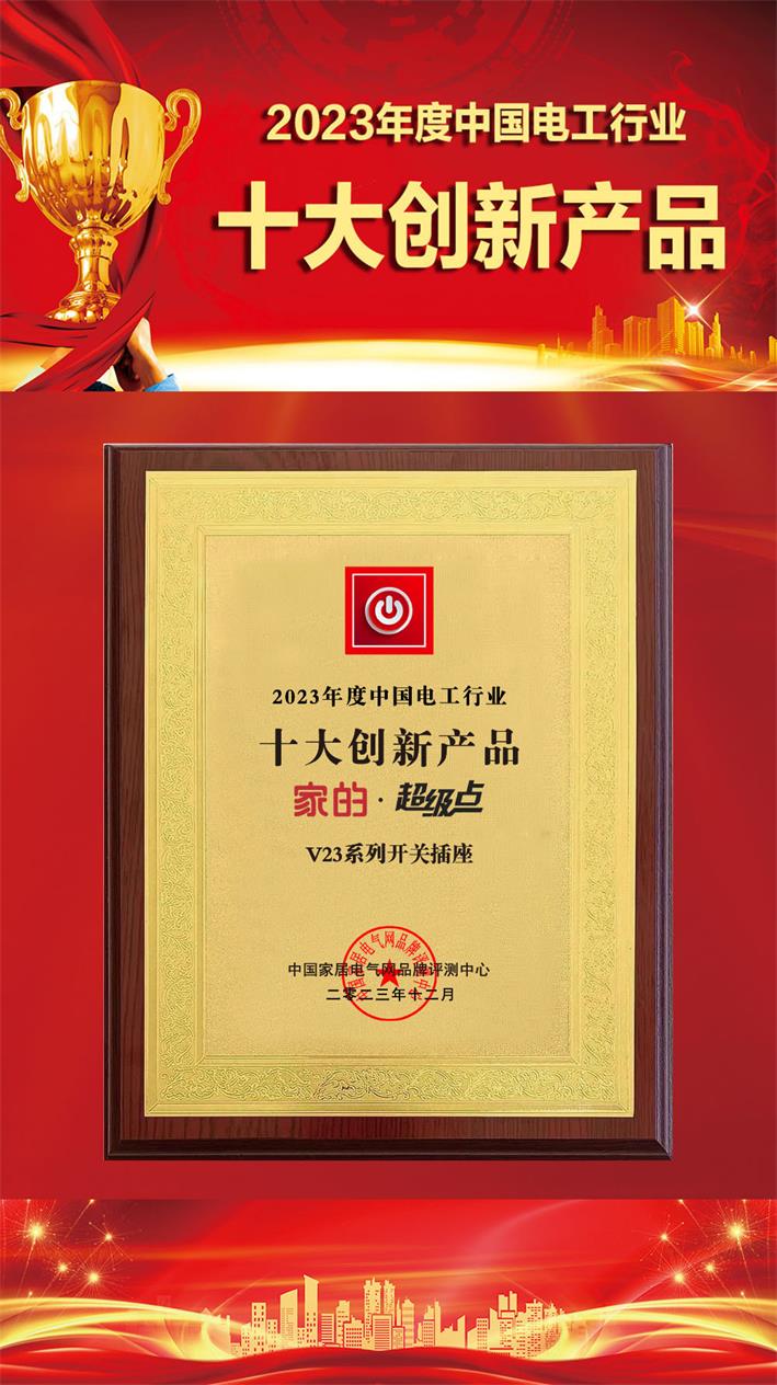 家的3大榮譽分別是:2023年度中國電工行業(yè)“十大領(lǐng)軍品牌”、“消費者信賴品牌”、“十大創(chuàng)新產(chǎn)品”。