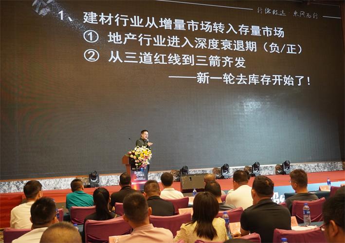 接著,家的公司總經理匡建發表以“新時代,新起點”為話題的內容。他判斷新形勢下市場的趨勢,分析家的在新格局下如何乘風破浪,介紹2024年度家的核心系列新品V28超級點開關、V90系列米家智能開關,還有家的智能生活館招商計劃等。其中,它強調家的產品矩陣——電工板塊、智能板塊、照明板塊的搭建。他講話簡明扼要,鞭辟入里,增強經銷商們開發市場的信心。