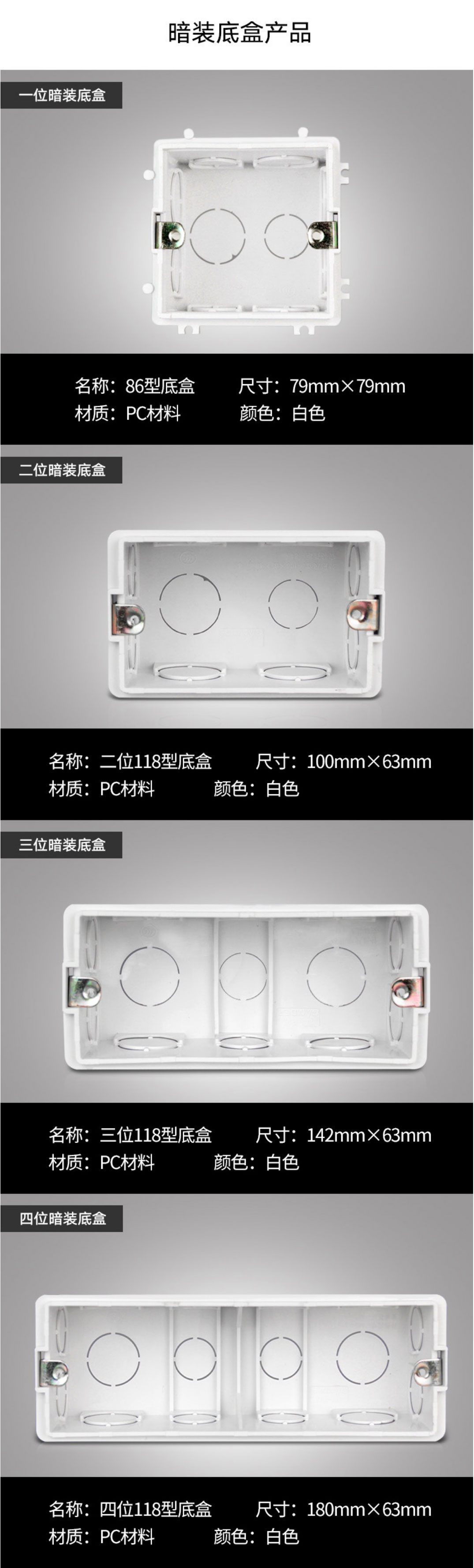 品牌: GAMDER/家的型號: 118-P14材質: PC分類: 118型二位暗盒 118型三位暗盒 118型四位暗盒