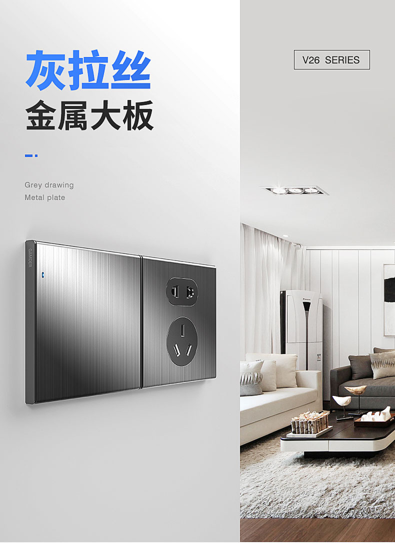 品牌: GAMDER/家的型號: JD-V26系列材質(zhì): 不銹鋼顏色分類: 灰拉絲電子電工產(chǎn)品類型: 86型